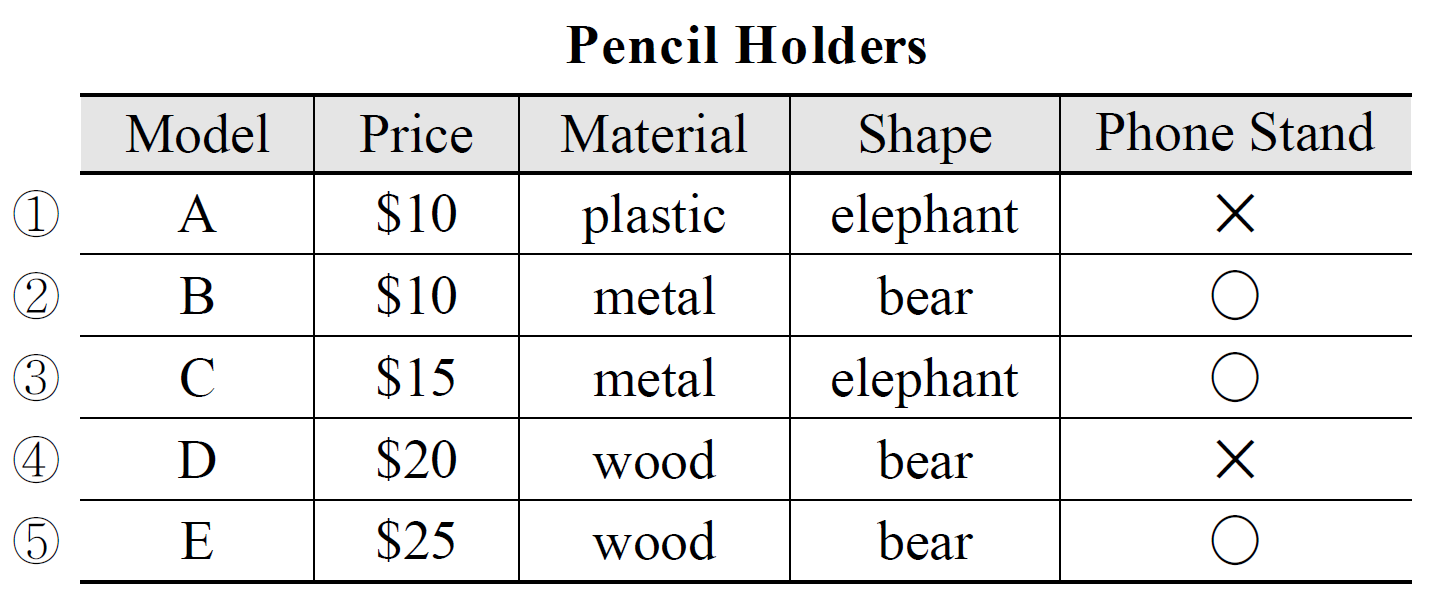 10. 다음 표를 보면서 대화를 듣고, 여자가 주문할 연필꽂이를 고르시오.