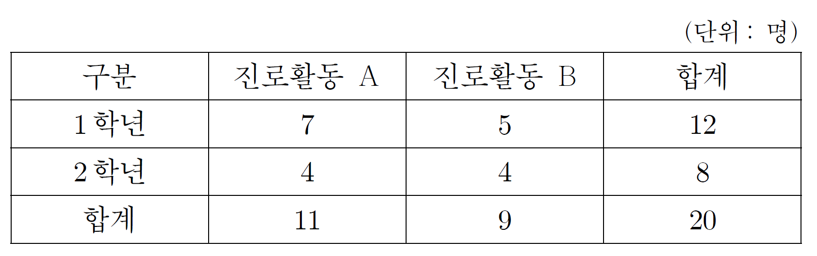 2 . 어느 동아리의 학생 20명을 대상으로 진로활동 A와
